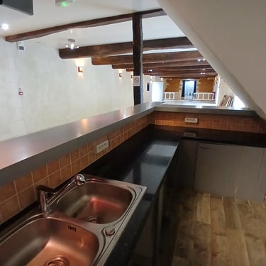 La salle dispose d'un bar équipé et d'une piste de danse avec un vidéoprojecteur à disposition.